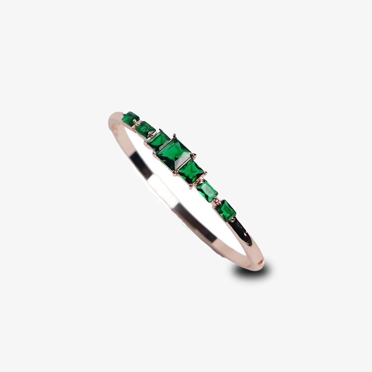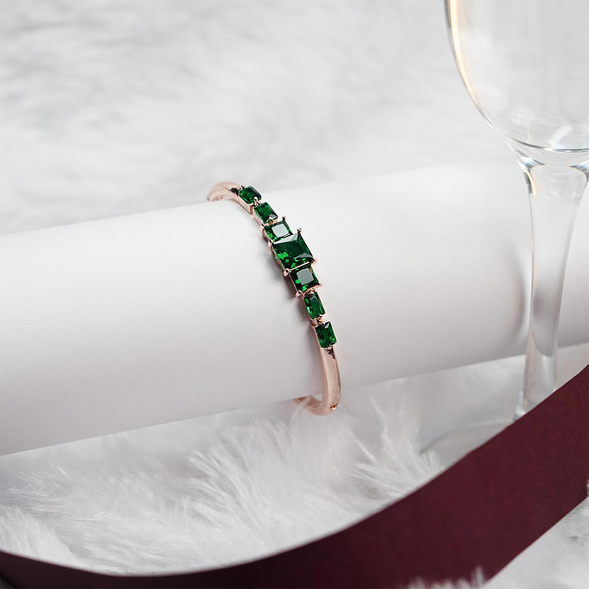 A sleek and elegant bracelet adorned with radiant emerald-green stones, set in a delicate rose gold band — perfect for adding a touch of sophistication and charm.