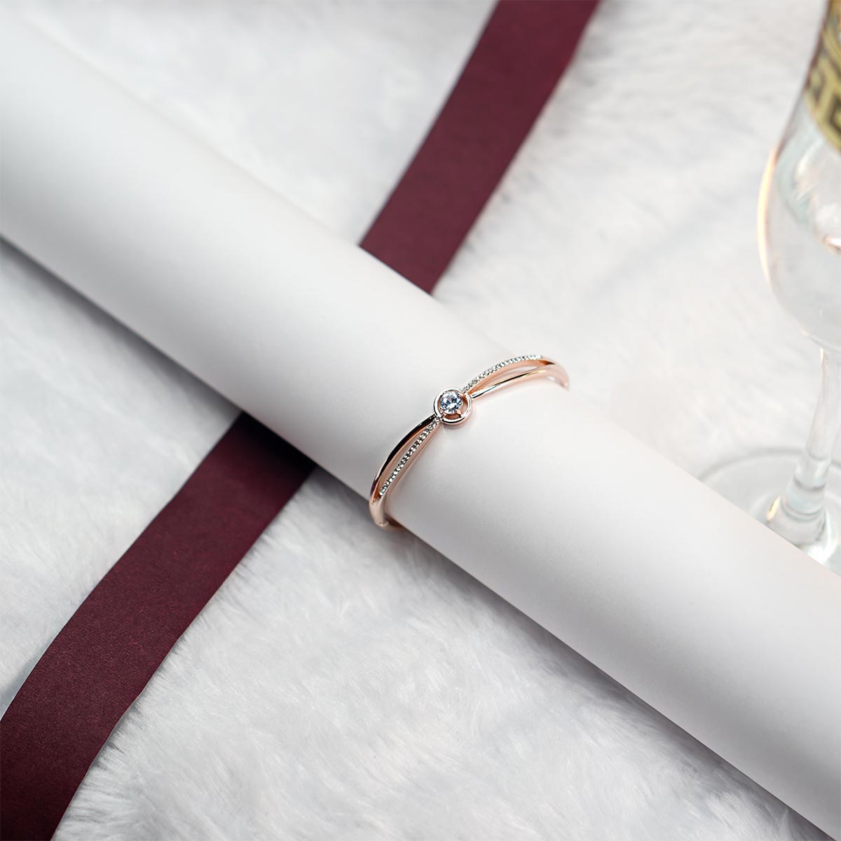 A delicate charm bracelet featuring a brilliant round centerpiece and elegant, shimmering accents for timeless grace.